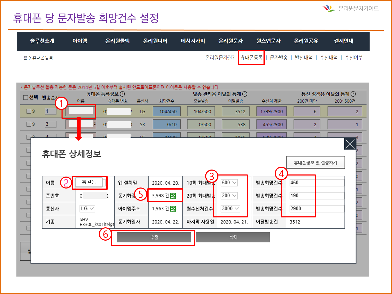 문자 [온리원문자] 발송건수 및 수신처수 직접 설정 2020-04-22 46469
